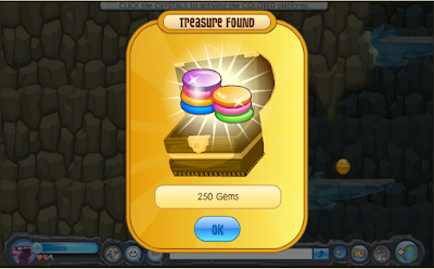 This one, I ended up playing 3 times! The first time, I got about half way through. I went to make lunch quick, them I got thrown out of the adventure. The second time I was literally at  the end, then I clicked on a tab on my computer, which closed Animal Jam. The third time was a miracle. I finally got through without something happening! So, the first 2 rounds I made 1,288 gems.