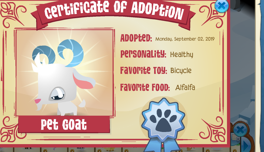 here is the adoption certificate of my pet goat Fancy Sprinkles